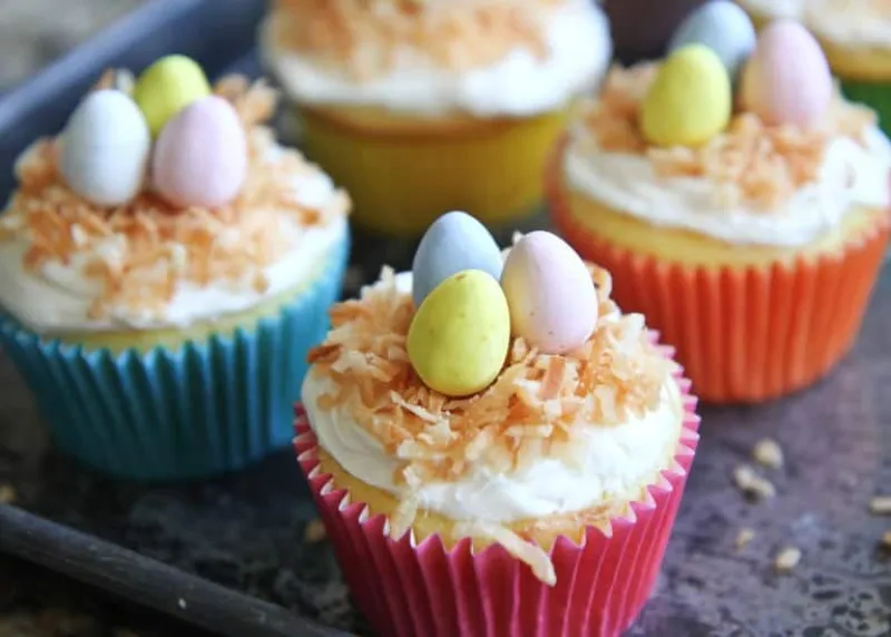 Delicious and easy macaroons become sweet Birds Nest Cookies thanks to some white chocolate and jelly beans. A great Easter cookie or spring dessert recipe.